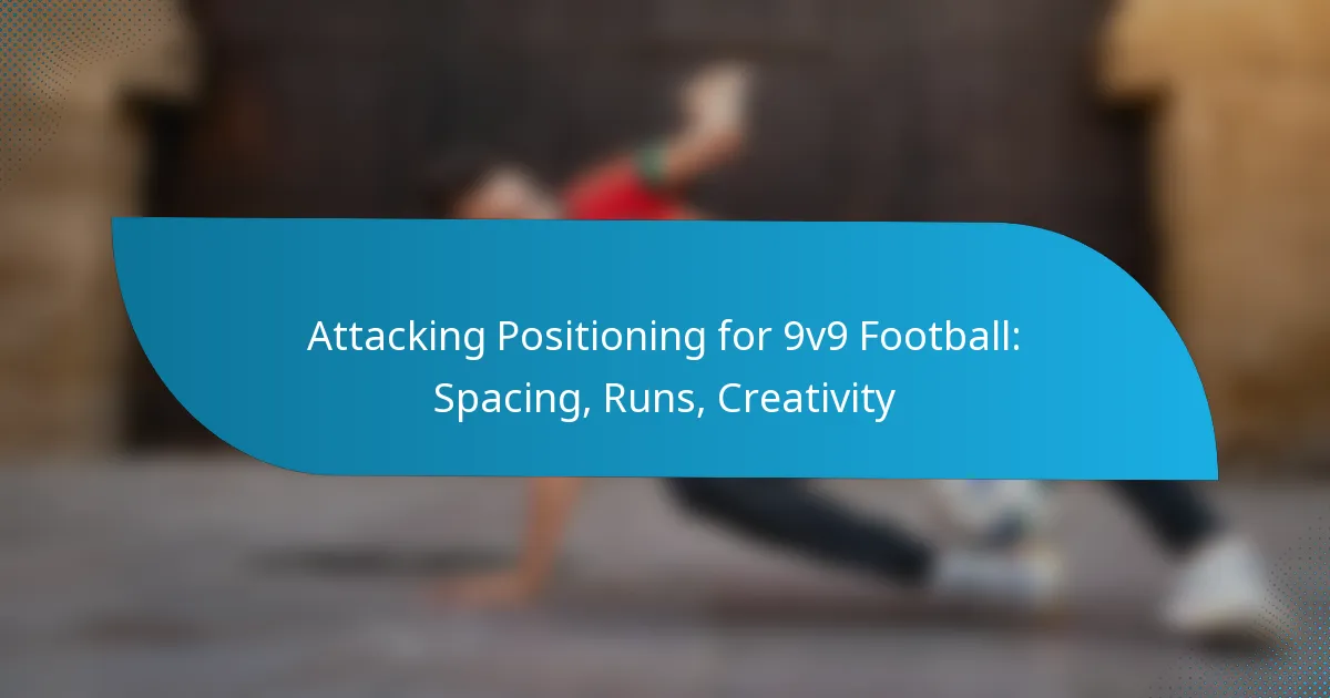 Attacking positioning in 9v9 football is essential for maximising offensive potential through effective spacing, dynamic runs, and creativity. By maintaining proper spacing, players can create clear passing lanes and minimise congestion, enabling the team to exploit defensive weaknesses. Additionally, varied runs disrupt defensive structures, fostering opportunities for teammates and enhancing overall team creativity.