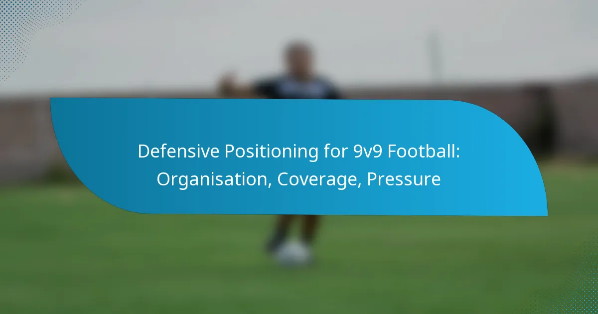 Defensive positioning in 9v9 football is essential for maintaining team structure and countering attacks effectively. By implementing strategic formations, defining player roles, and fostering communication, teams can enhance their defensive organisation. Additionally, a combination of zonal and man-to-man marking, along with coordinated pressure on the ball carrier, can significantly improve a team’s ability to regain possession and thwart the opposition’s efforts.